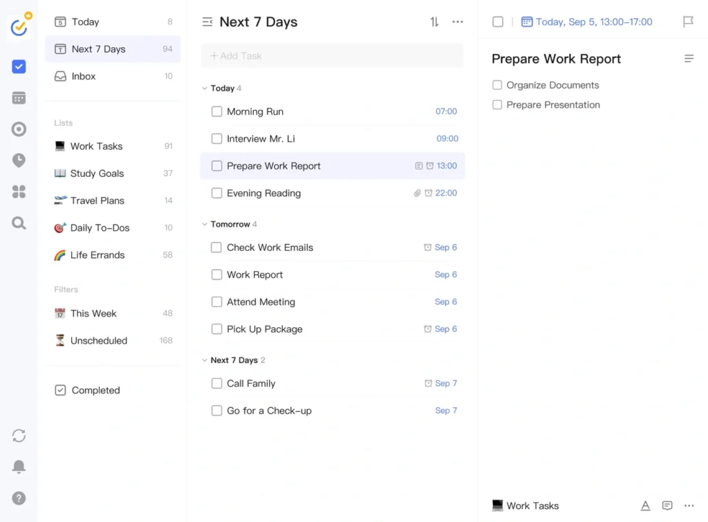 2. Integration with Google Calendar – Menampilkan tugas TickTick di Google Calendar untuk melihat jadwal secara terpusat. Pengguna dapat mengintegrasikan hingga 5 kalender dalam satu akun, serta menetapkan prioritas dan atribut tugas melalui pintasan.
